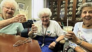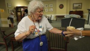 “This is our happy hour,” said Director of Activities Ashley Bryan, while the music of Frank Sinatra and Bobby Darin played in the background. “It’s a chance for residents to say hello and catch up on the week in an informal way.”