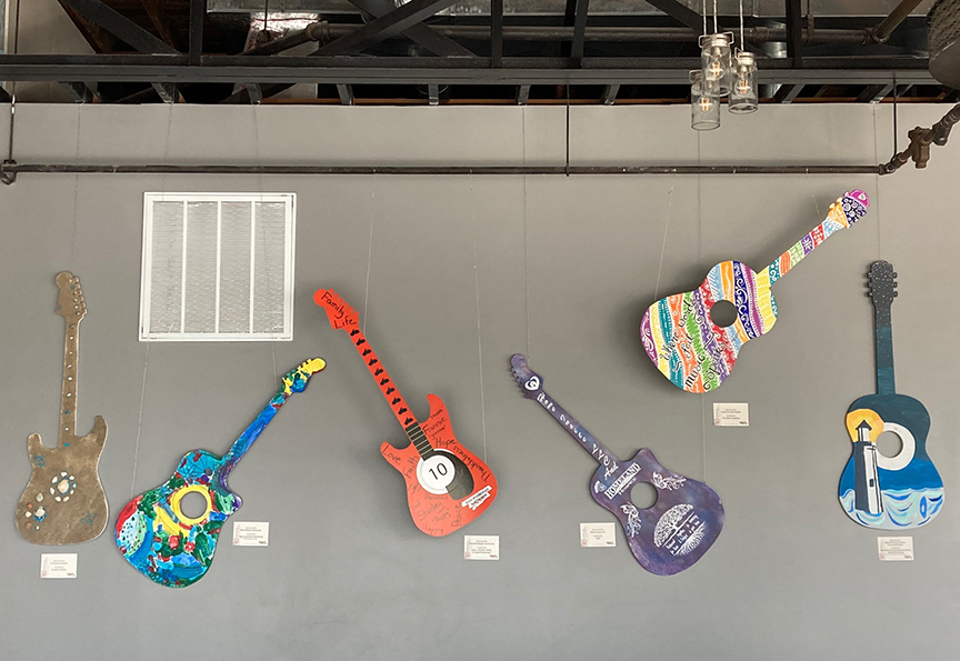 Designing the guitars was not only therapeutic, but an opportunity for individuals to unleash their inner-artists. From local elementary school students and business owners to professional artists, the guitar designers used their talent to showcase their personality. Just like music, the guitars speak to everyone individually while conveying a sense of community.
