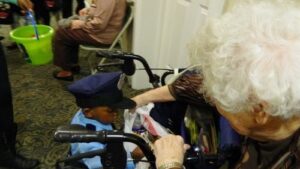 Zion’s godmother, certified nurse’s assistant Sam McNeely, introduced Zion to Wise. “It’s my godson, Betty,” she said. Wise marveled at seeing McNeely out of her CNA uniform. “Look at glamourpuss here!” she said.