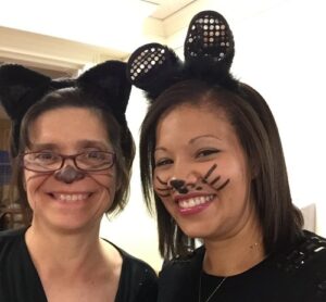 Cruys wore a sweater adorned in pumpkins, ghosts, and scarecrows. On her head, she wore a hat topped with a spider. As 7-year-old Alisha Hidalgo, a witch in purple and black, accepted her candy, she said, “Hi, Miss Cruys. You look very beautiful today.”