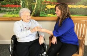 Nutrition-at-risk aide Christina Dinger enjoys “being able to build a rapport with the residents.”