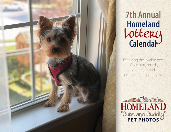 The lottery calendar has become a tradition for friends, volunteers and supporters of Homeland’s work. The monthly calendar costs $25 and supports the organization’s benevolent care programs. More than 1,000 calendars are produced and sold and everyone who purchases a calendar is eligible to be entered into daily drawings for cash prizes.