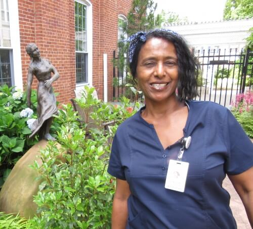 That attentiveness was evident on this Monday; about 16 residents happily engaged with the program. Lee provides song sheets so the residents can sing along, but with a program stocked with holiday favorites – “White Christmas,” “Rudolph the Red-Nosed Reindeer,” “Have Yourself a Merry Little Christmas” – most didn’t need much prompting.