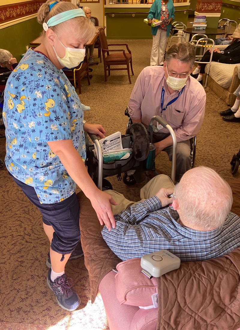 The positive response from the staff inspired “Calm My Mind Teatime” sessions for skilled-care residents. Residents affirm the positives in their lives, meditate on what makes them grateful, and discuss their revelations over tea and Lorna Doone shortbread cookies.