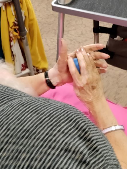 Looking to change up your exercise routine? How about cardio drumming? “You hit a big ball,” says Activities Coordinator Diomaris Pumarol. “We play music from the ‘50s and ‘60s that residents connect with and they drum along.” The cardio drumming