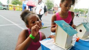 The fair was held all around Homeland’s grounds. Classic cars, including a Chevy Impala convertible and a little red Corvette, lined the street. A reptile petting zoo outside the front fence offered the chance to touch a tarantula and a snake. Kids enjoyed the bounce house, video game truck, face painting station, and carnival games.