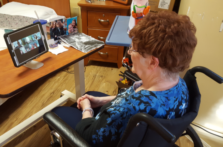 “We continue to help residents participate in the life events of their families,” says Alice Kirchner, who coordinates the technology involved and supports the team of activities, social work, and development staff facilitating the calls.